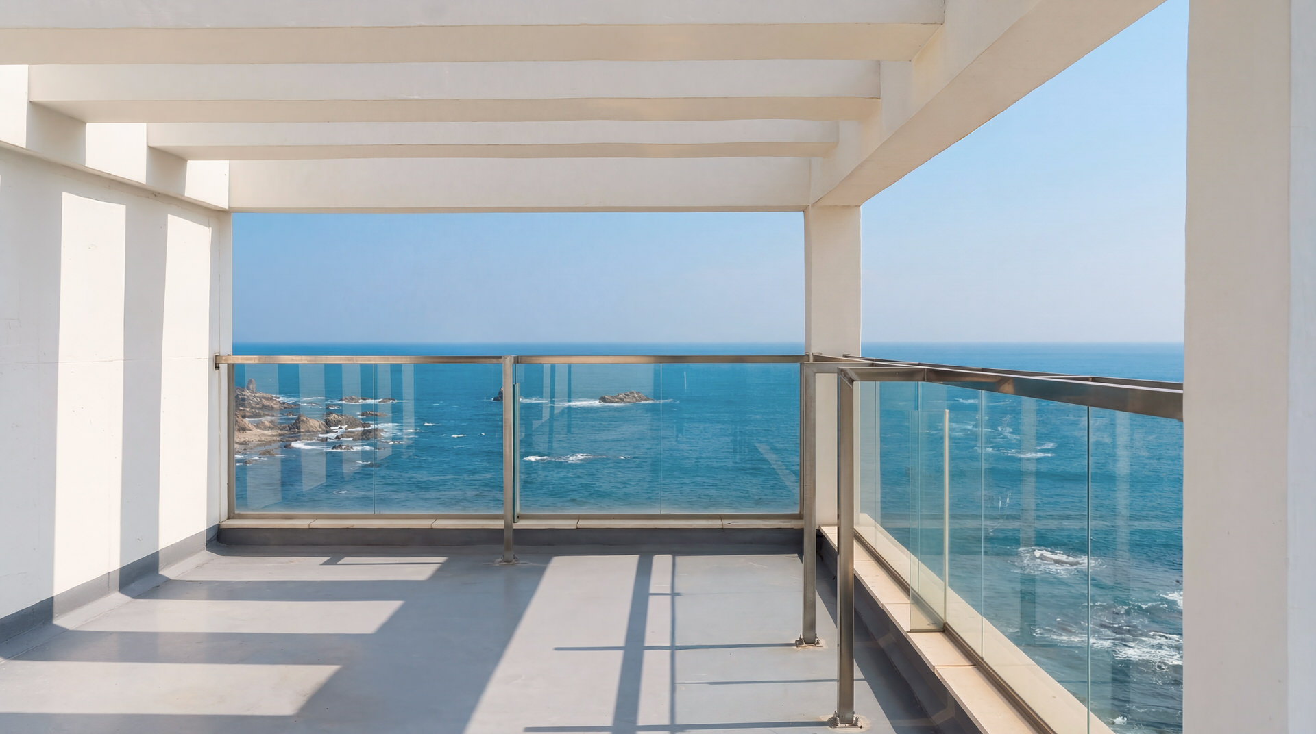 아름다운 바다가 파노라마로 펼쳐지는 풍경을 바라보며